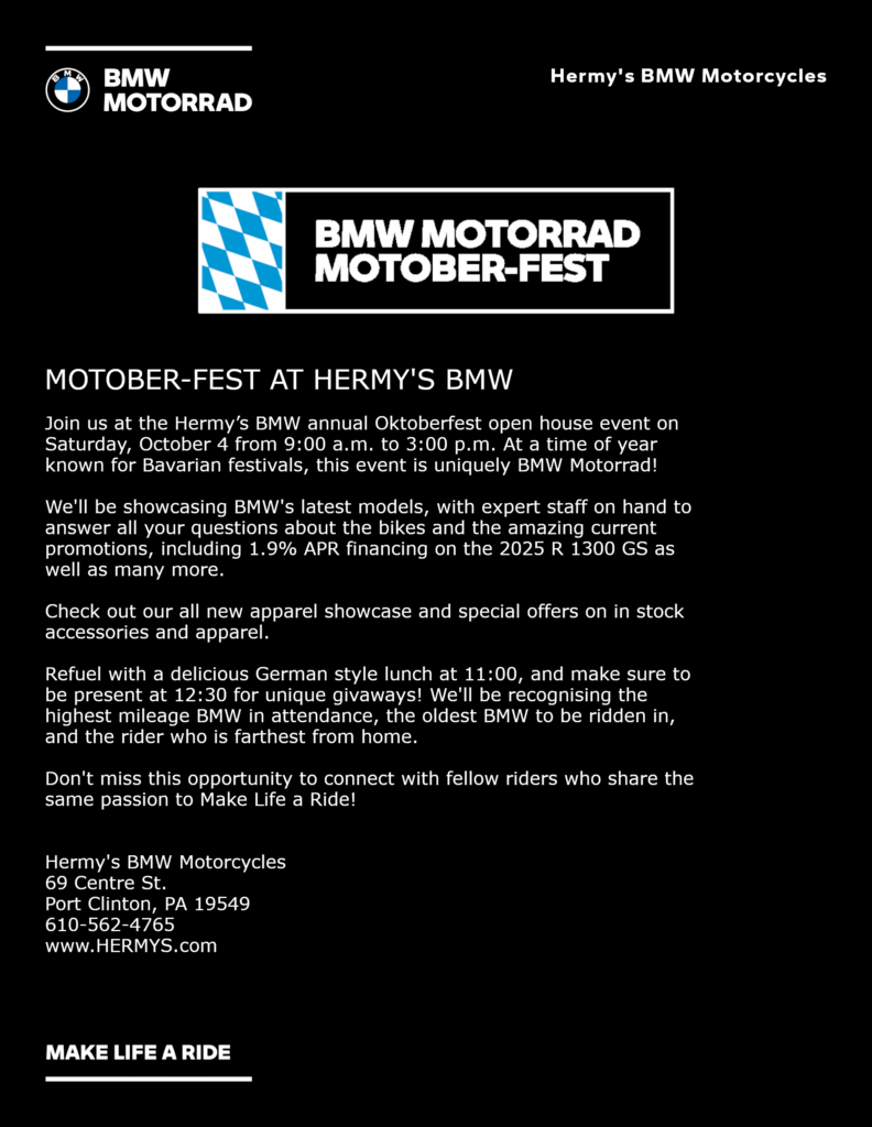 📆 Mark your calendars! Join us at Hermy’s annual Oktoberfest open house event 🏍️ 🍂 🥨