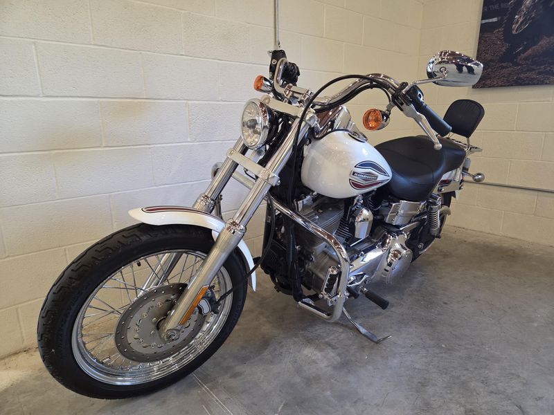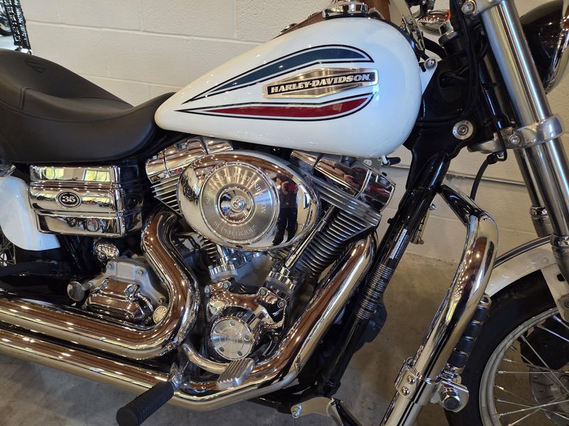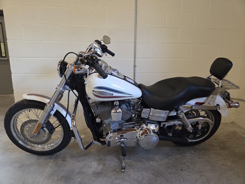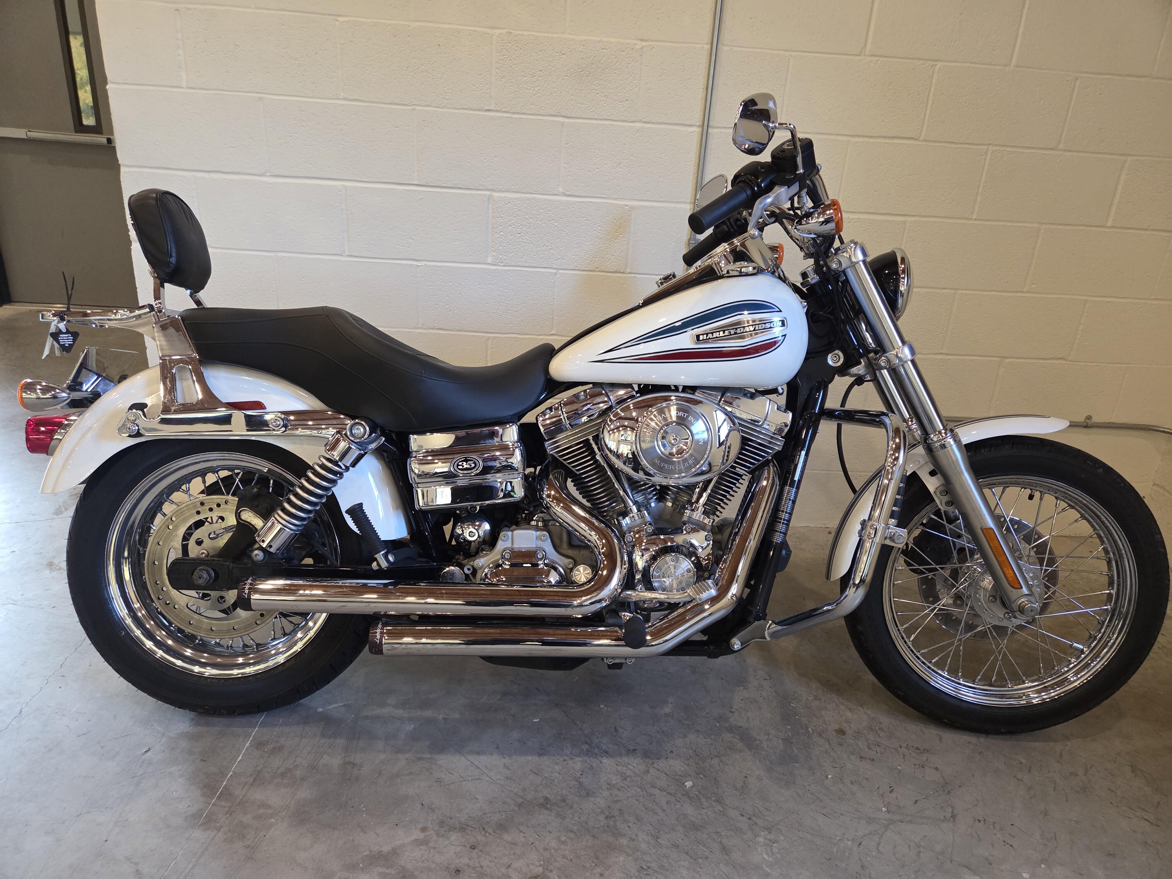 Celebrate Harley heritage with this 2006 FXDI35 Super Glide, a limited-production model built to honor the 1971 Super Glide - the original factory custom! Featuring the distinct white paint with red and blue striping, a numbered badge, and that unmistakable 88 cubic inch, Twin Cam rumble. Sounds great thanks to the 2-2 Rinehart chrome exhaust, and cruises great on the highway with its 6-speed transmission!
