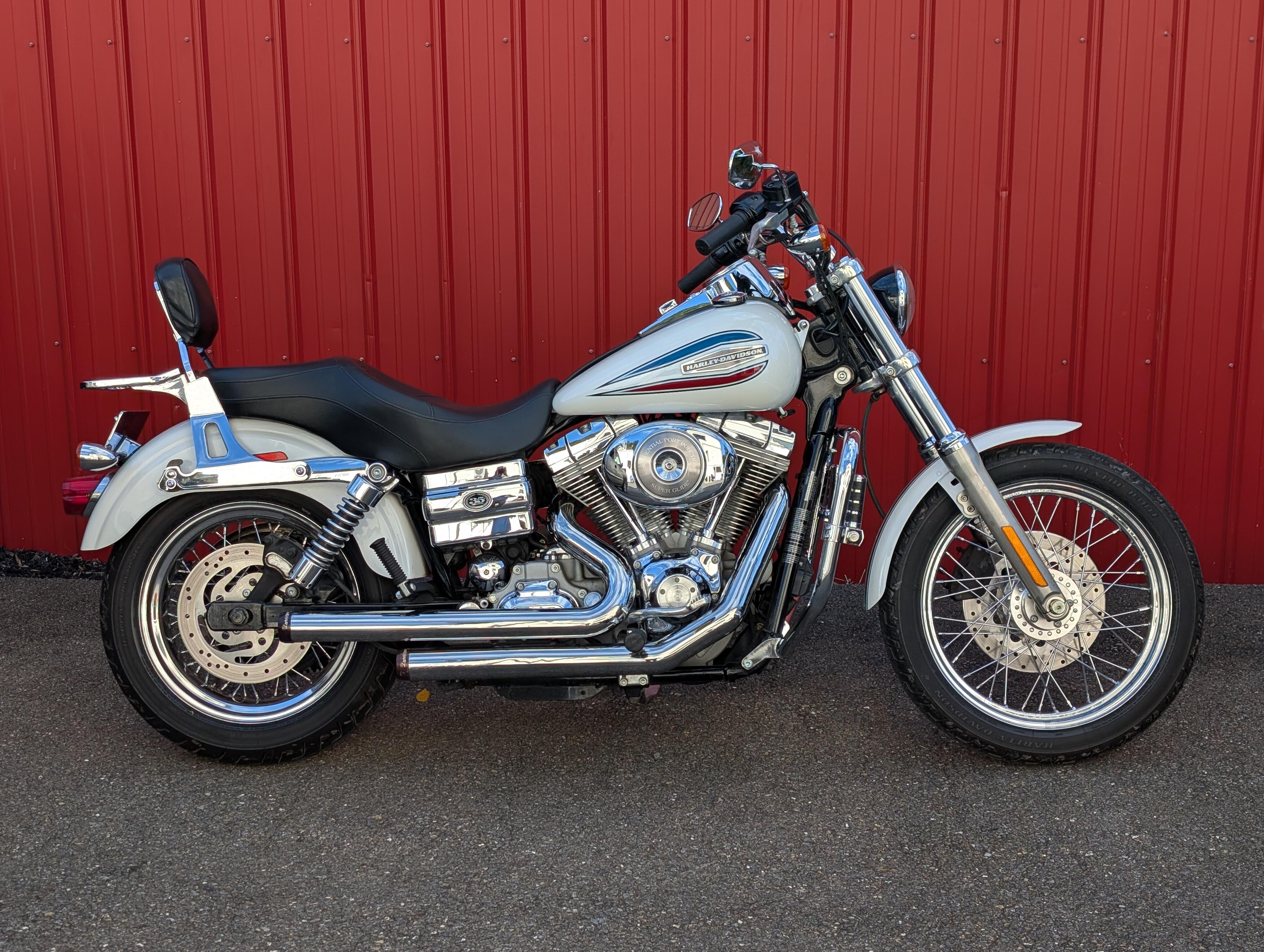 Celebrate Harley heritage with this 2006 FXDI35 Super Glide, a limited-production model built to honor the 1971 Super Glide - the original factory custom! Featuring the distinct white paint with red and blue striping, a numbered badge, and that unmistakable 88 cubic inch, Twin Cam rumble. Sounds great thanks to the 2-2 Rinehart chrome exhaust, and cruises great on the highway with its 6-speed transmission!