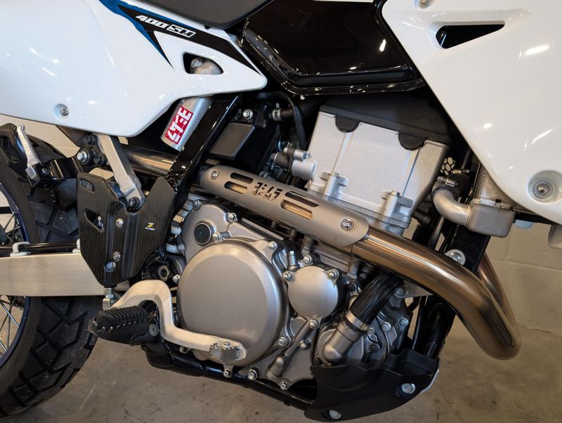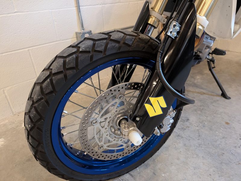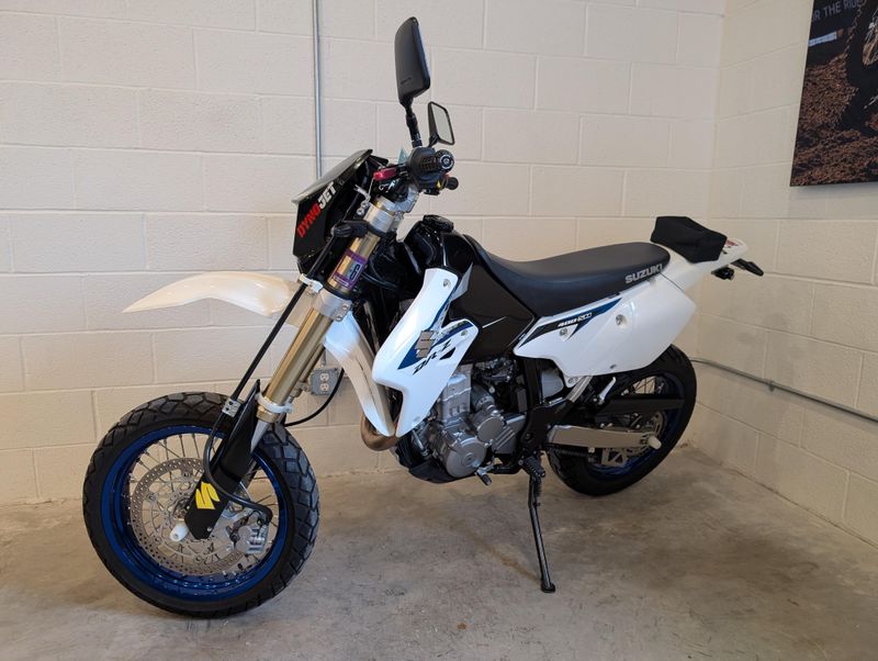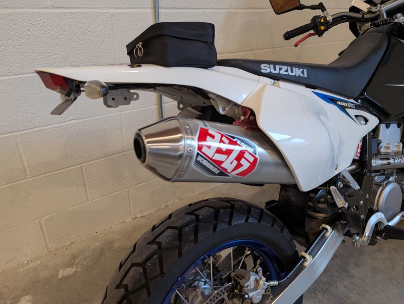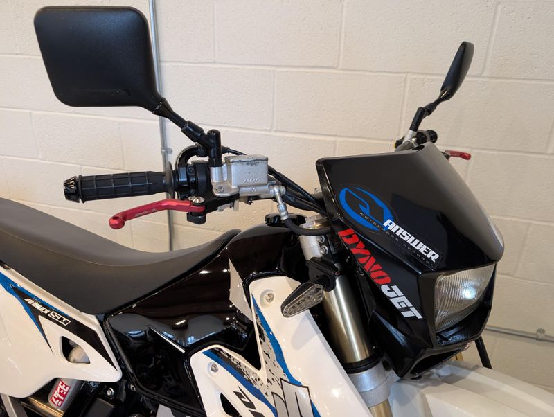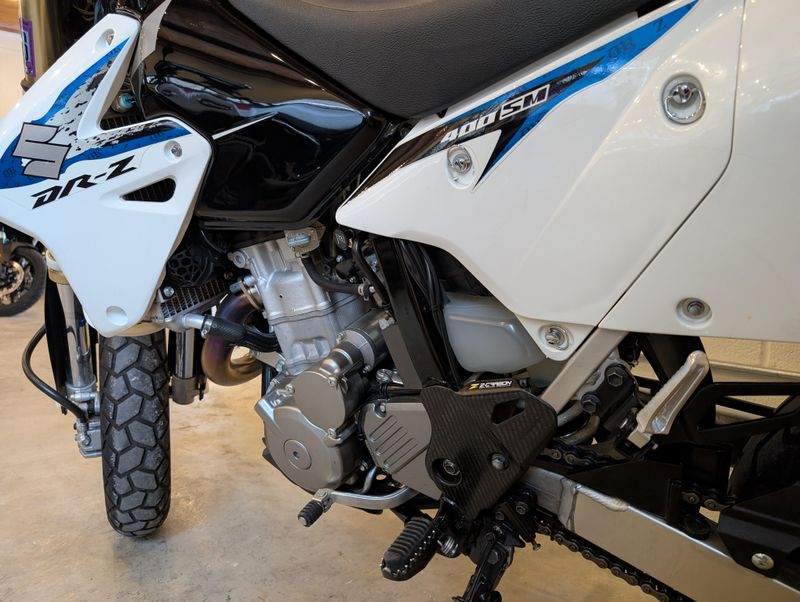 This might be one of the most well cared-for Supermotos on the market! The photos should speak for themselves, this DRZ really shines! A few great accessories, like the full Yoshimura exhaust and jet kit, carbon fiber frame protectors, and compact rear light/tag mount kit.