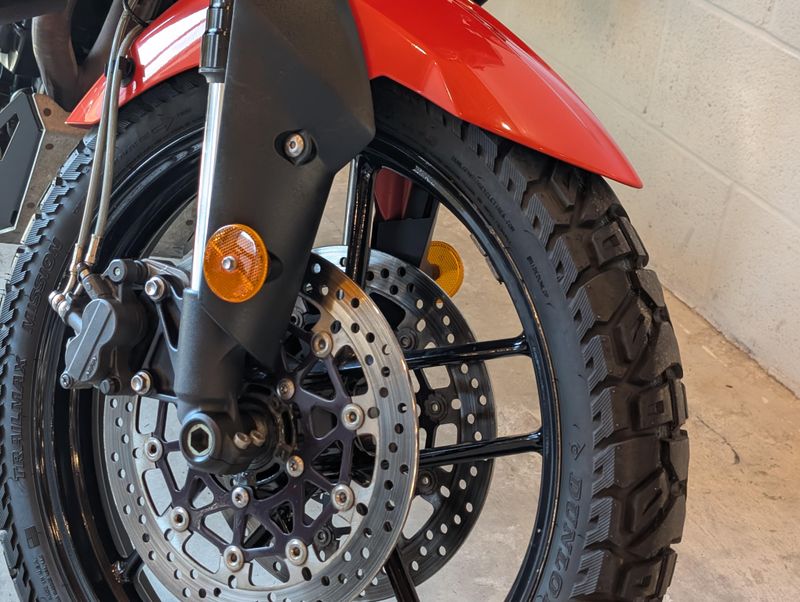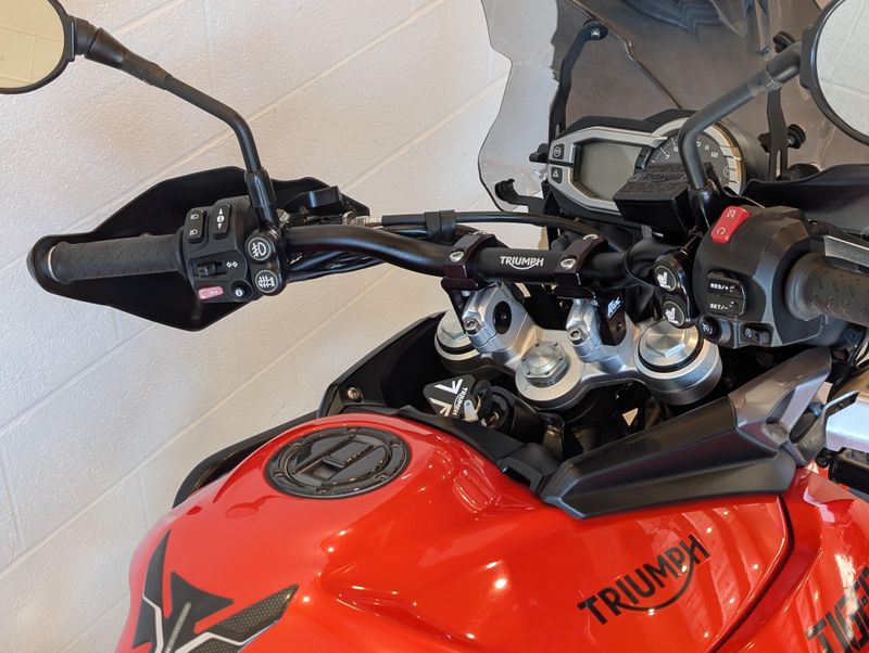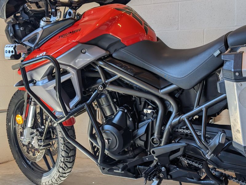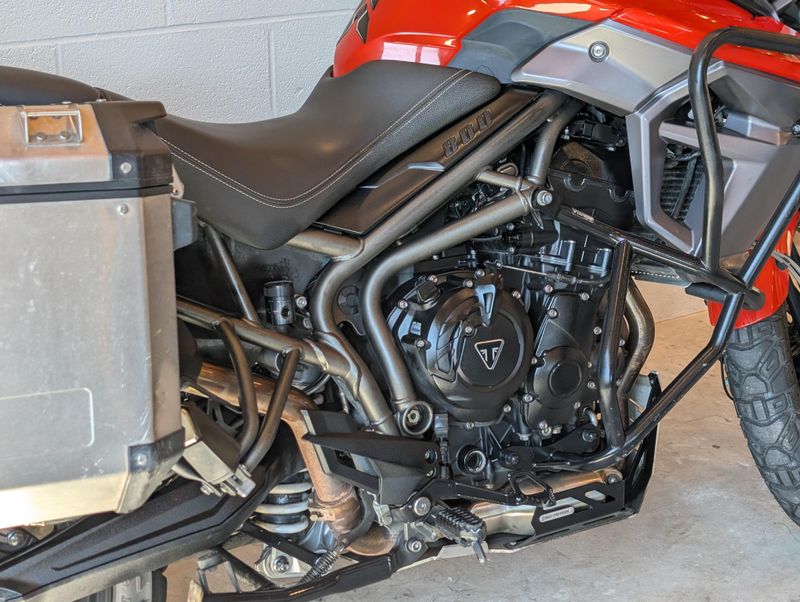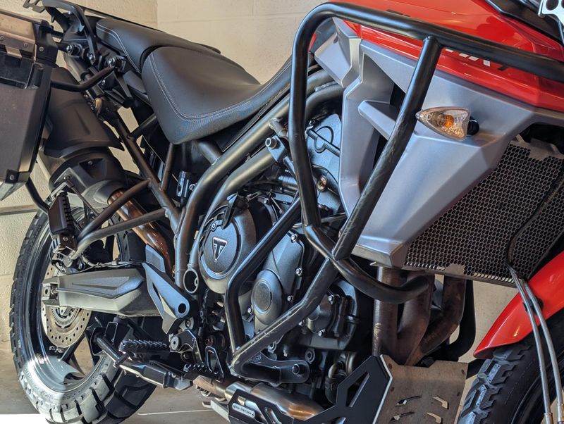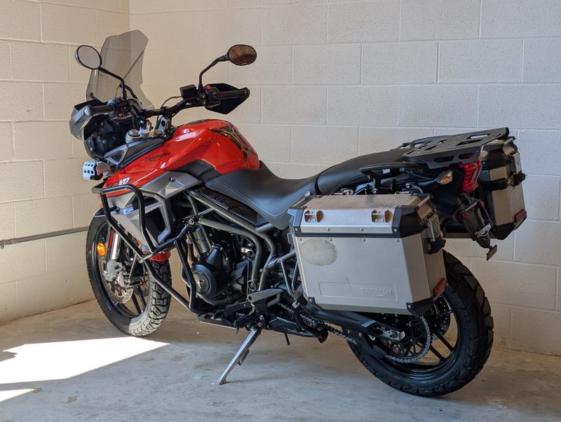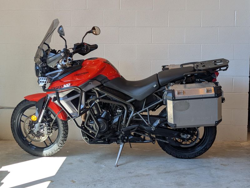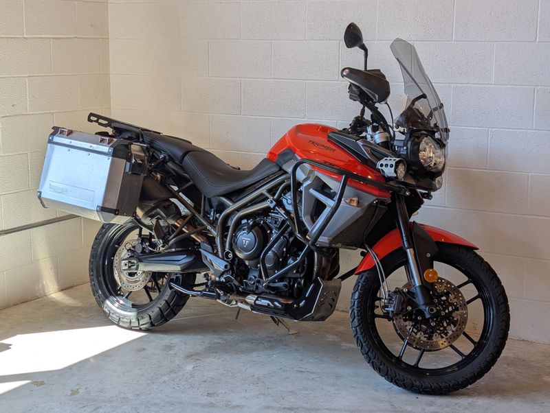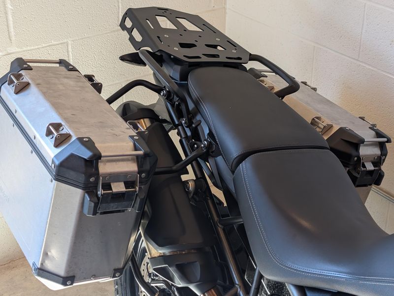 Low seat height, set up for adventure travel! Bar risers, hard aluminum luggage, big windshield and plenty of crash bars and guards. Bumps and bruises from dirt-road travels over the years, but a well kept bike overall. Ready for many more miles, especially if you're looking for an adventure bike that doesn't have a super tall saddle!