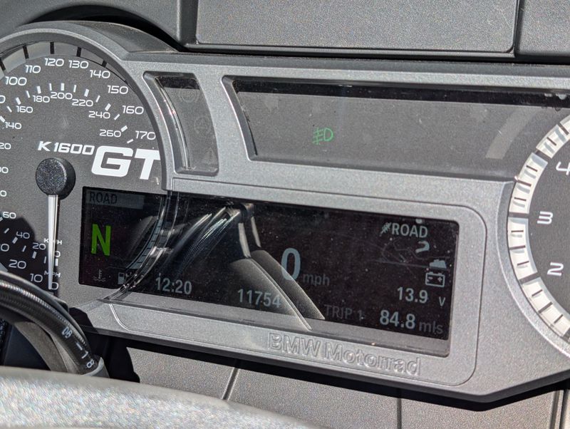 Beautifully kept K1600GT - lots of practical upgrades for the long distance rider. Touring windscreen, Russell Day-Long rider's saddle, Clearwater Erica driving lights, auxiliary GPS/electronics mounts, saddle bag guards, and more. Plus, much of the bike is protected with clear Paint Protection Film to keep that black storm metallic paint looking its best!