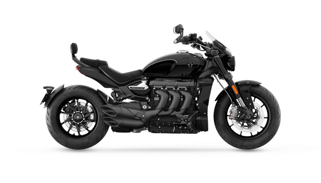 The lightweight sports-styled 10-spoke cast aluminum wheels contribute to the Rocket 3 Storm’s easy handling and are finished in black for added attitude.